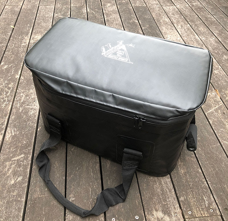 また、昨年「フロストパック」としてリニューアルしたモデルの新色も登場します! どこをリニューアルしたのかというと、まずは断熱層が1枚から2枚になり、保冷機能がアップ。さらに「12QT」、「23QT」のショルダーストラップにLOCOMODIVシステム(ラバー部分)を採用し、より滑りにくく、背負いやすくなりました。それとココが一番うれしいポイントだと思いますが、従来品に比べて価格が30%~40%もリーズナブルになったのです。高品質な高周波によるシーム溶着だから、水と氷を入れてバケツのようにも使えますよ!