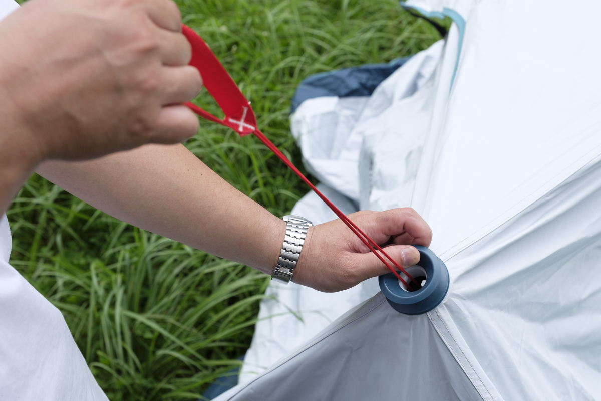佐々木 まず良いなと思うのは、やはり両サイドのヒモをそれぞれ引っ張るだけで、テントが立ち上がる点です。テントは様々な部品がバラバラにあると混乱しますが、この製品は固まっていますから設営が楽なだけじゃなく、混乱しないところも良いと思います。