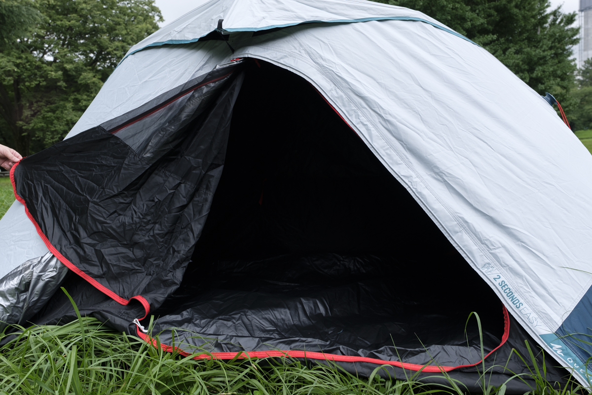 佐々木 そして、この遮光性抜群の素材が大きな特徴です。朝寝坊してしまうほど光を遮る素材のようですが、それでいて通気口もしっかり確保しています。1万7900円と、デカトロン商品では高額の部類に入りますが、十分優れたテントでしょう。