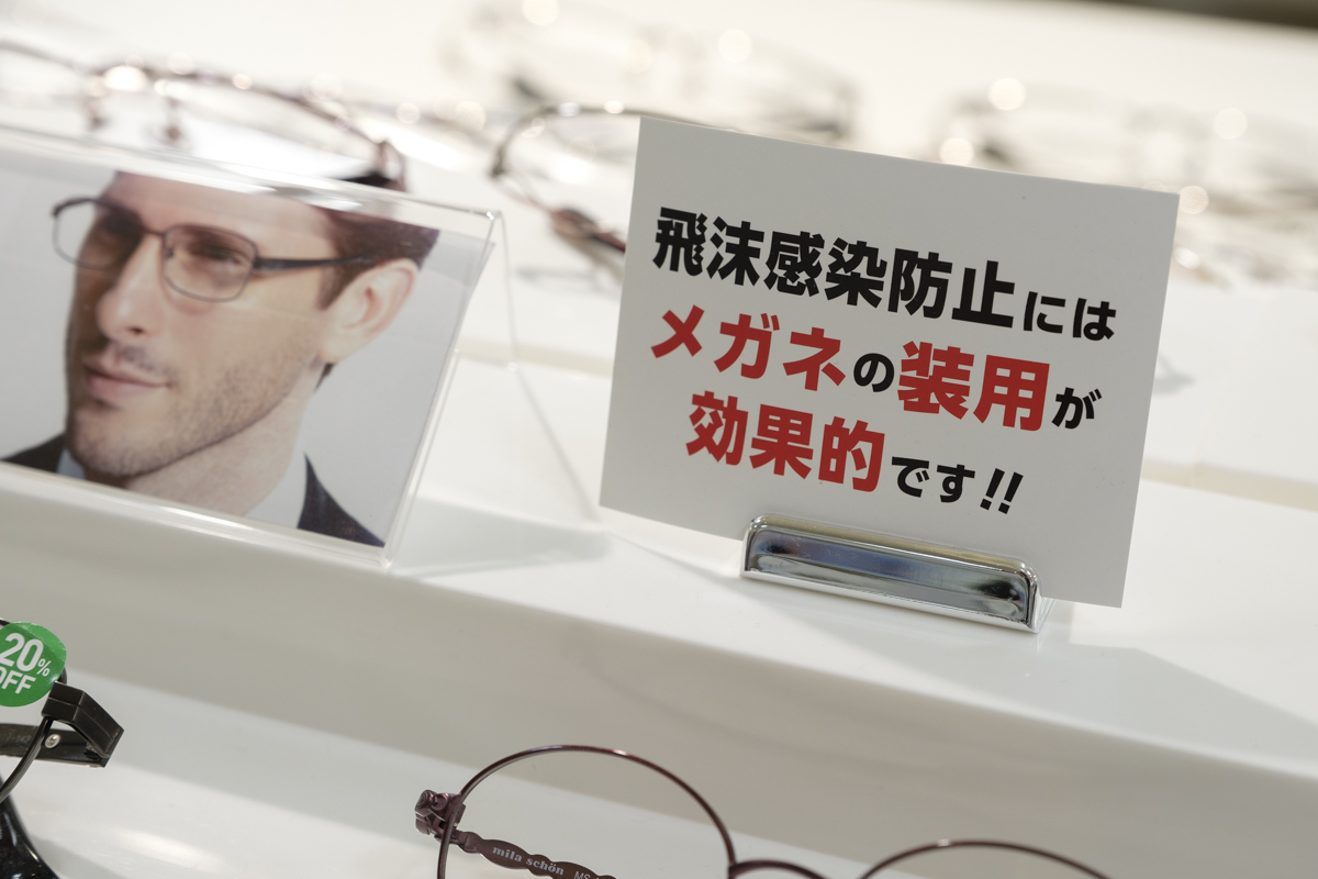 また、ウイルスは「目からも感染する」とも言われています。これを逆手にとって考えると、目が悪くない人でも、ダテメガネをすることで感染防止はだいぶアップするはずです。花粉症対策と同じ感じですね。余談ですが、そのような理由から、コロナ禍以降はメガネの需要が増えていますよ。