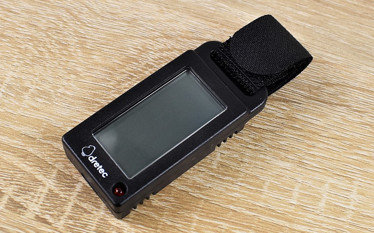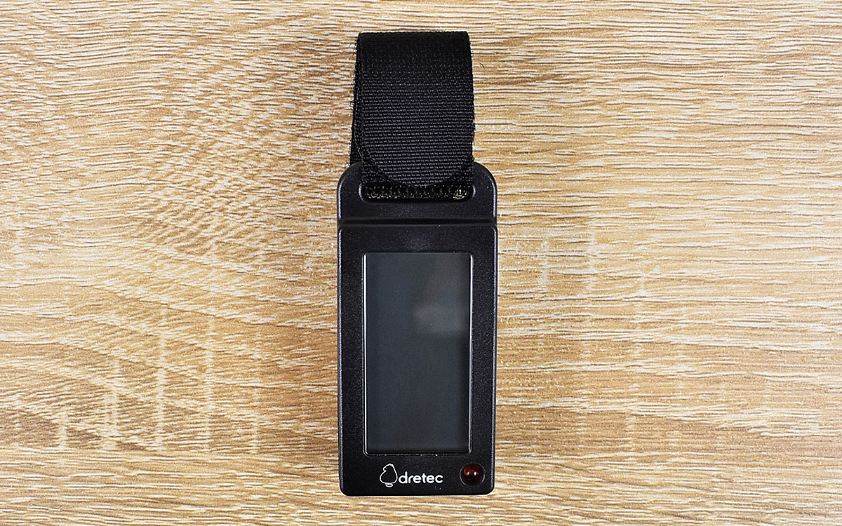 長方形の本体に取りつけバンドがついた同商品。サイズは約64(縦)×30(横)×14mm(奥行き)と小型なので、鞄やベビーカーにつけても目立ちません。重さは電池を含めて約21gと軽く、運動のお供にもうってつけですよ。