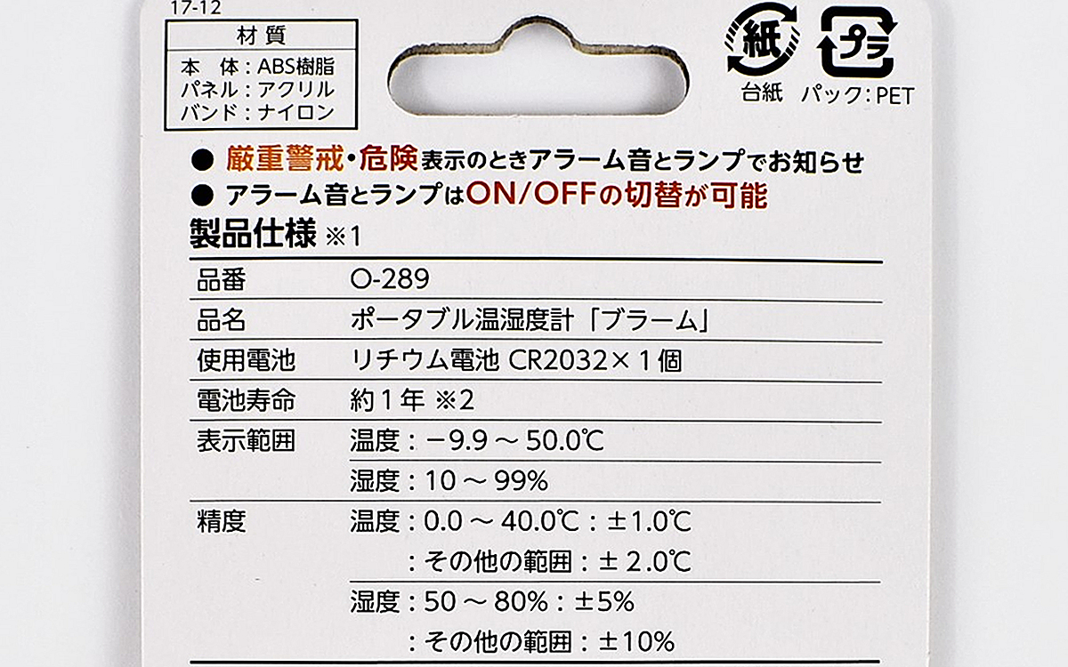 ●危険をすぐに察知できる「O-289ポータブル温湿度計 ブラーム」(ドリテック)