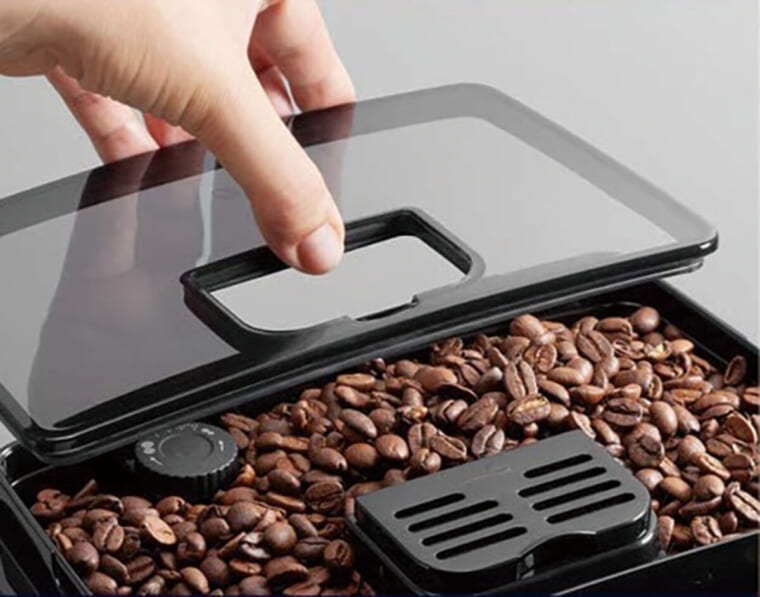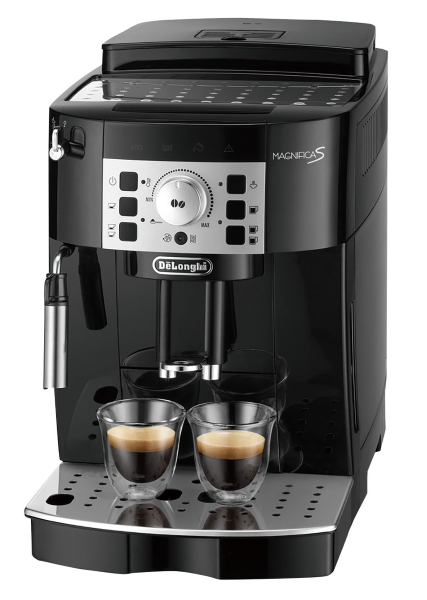 いつでも挽き立てのコーヒーを楽しめる、Amazonデロンギ直営店限定のコンパクトモデル。ボタンを押すだけでメニューごとに水と豆の最適量が設定され、豆挽きから抽出・洗浄まで行える。どんなインテリアにも調和するデザインも秀逸。