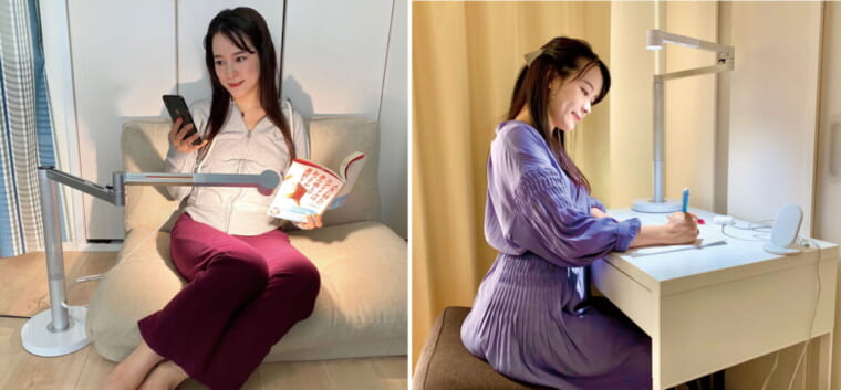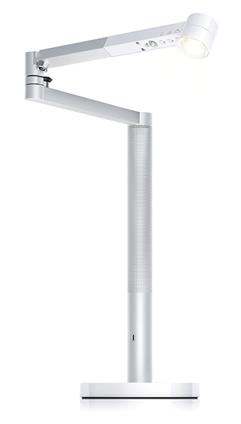 ミニマルなデザインが特徴。1台で、作業灯、間接照明、リラックスライト、スポットライトの4役を果たす。「GPSで現在地を割り出して、そこの“屋外の自然光を再現”するのがスゴい! 部屋にこもっていても、光で時間の経過を感じられて、体内リズムが整うんです」