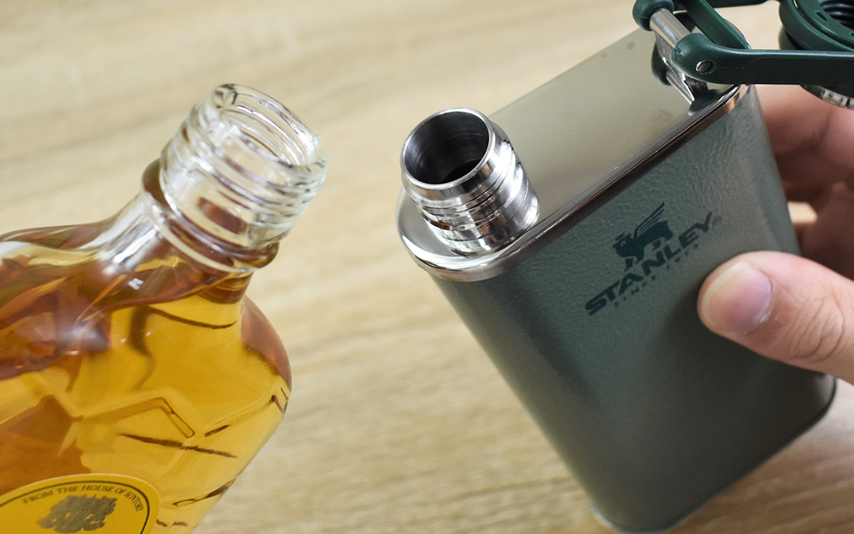 スチール真空ボトルのパイオニアとして、100年以上にわたり愛されているアウトドアブランド「STANLEY(スタンレー)」。同ブランドの「クラシックフラスコ」は、“クラシックシリーズ”から登場したアウトドア用のスキットルです。ワイルドなデザインに魅了されたファンは多いようで、ネット上では「カッコいいデザインに一目惚れ!」「コイツで飲むウイスキーが格段にウマい…」など絶賛のコメントが。男心をくすぐるルックスに惹かれて、私も購入してみました!
