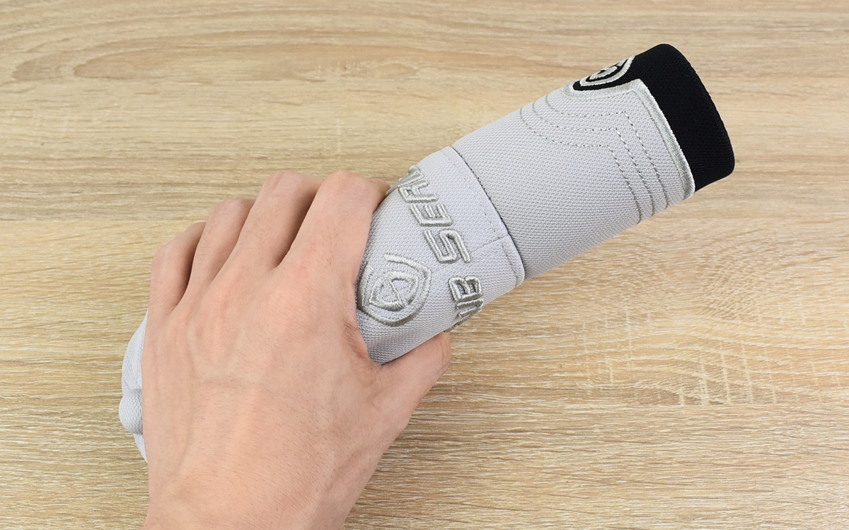 水で濡らして十分に絞れば準備完了。「水滴が気になるかも?」と不安でしたが、生地の吸水性が高いおかげで水が滴ってくることはありませんでした。段々と頭の温度が下がっていく感覚もGOOD。濡れたタオルを頭に巻いているかのような、ひんやりとした爽快感を体験できますよ。