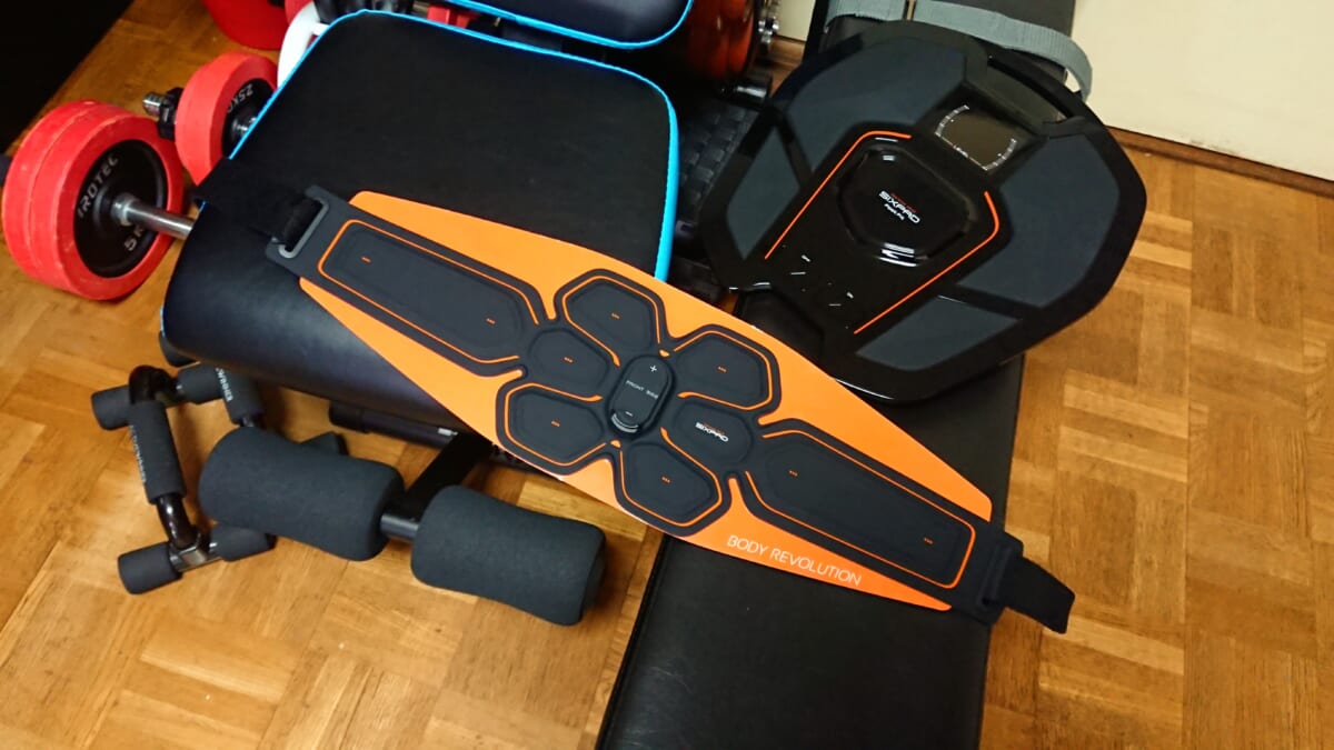 これを1日1回、10日間ほど試した結果、うっすらと腹直筋が見えてみたような気がします。最初の数日は気合が入り過ぎたこともあり、強度を上げ過ぎてしまいしっかりと筋肉痛になりましたが、腹筋自体が電気になれてしまうのか日を追うごとに強度を上げていきました。