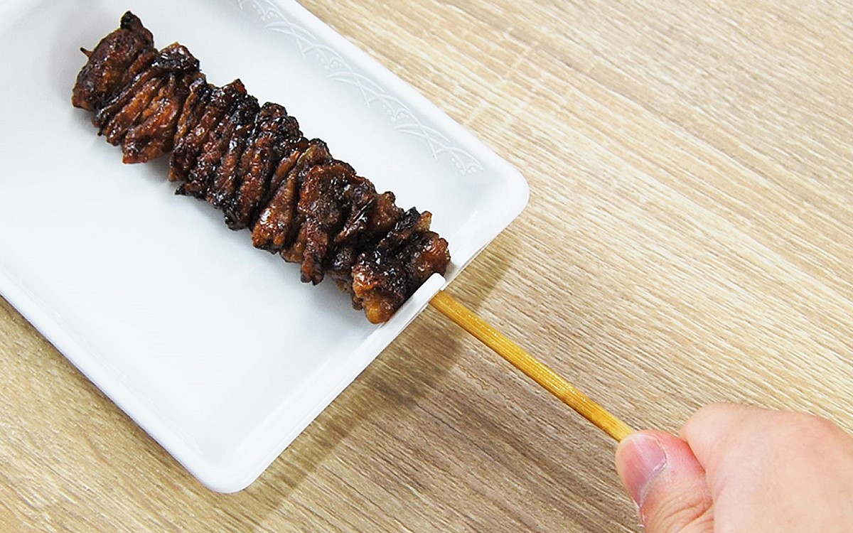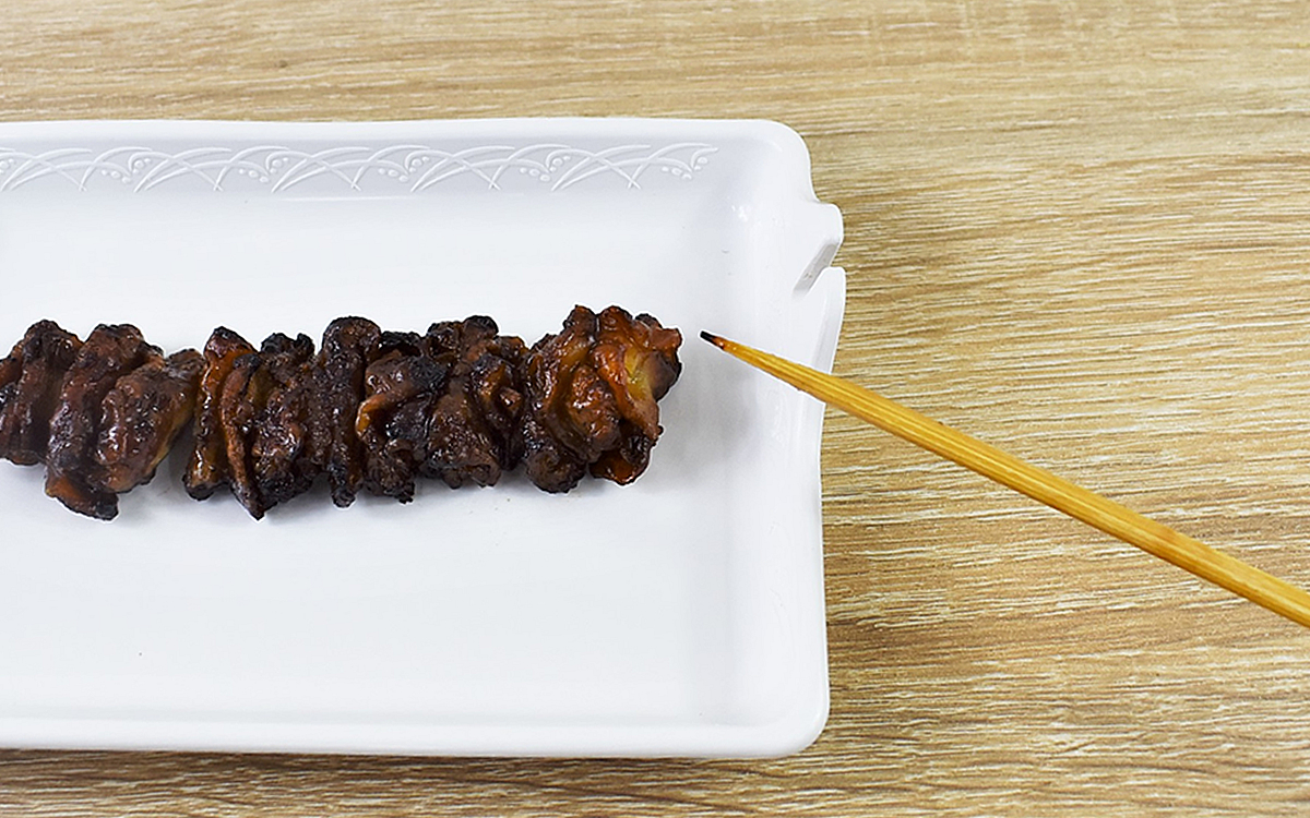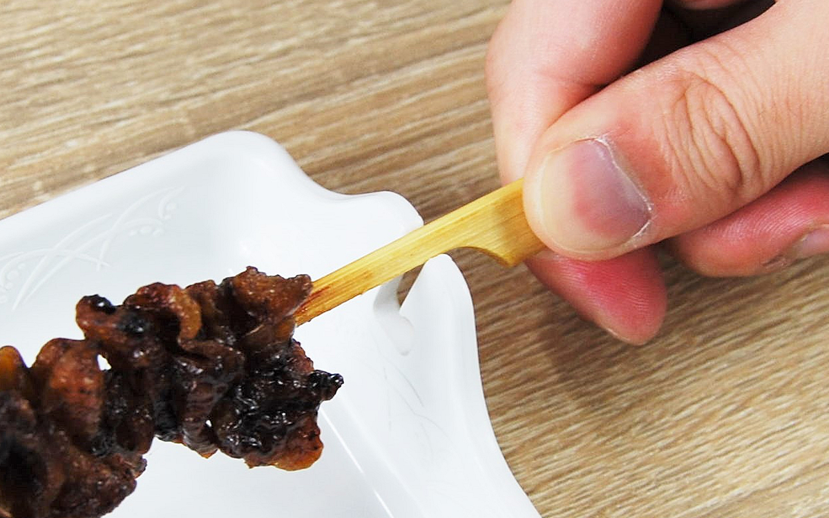 やきとりの串をセットして思いっ切り引き抜いてみたところ、具材はいとも容易くバラバラの状態に。力を入れすぎたため「トレーが割れるかも!」と心配でしたが、PBTで作られた本体は陶器のように硬く想像以上の頑丈さです。深さのあるトレーなので、タレや具材が落ちる心配もありませんでした。これならBBQやキャンプなど足場の悪いシーンでも、快適に食事を楽しめますね。