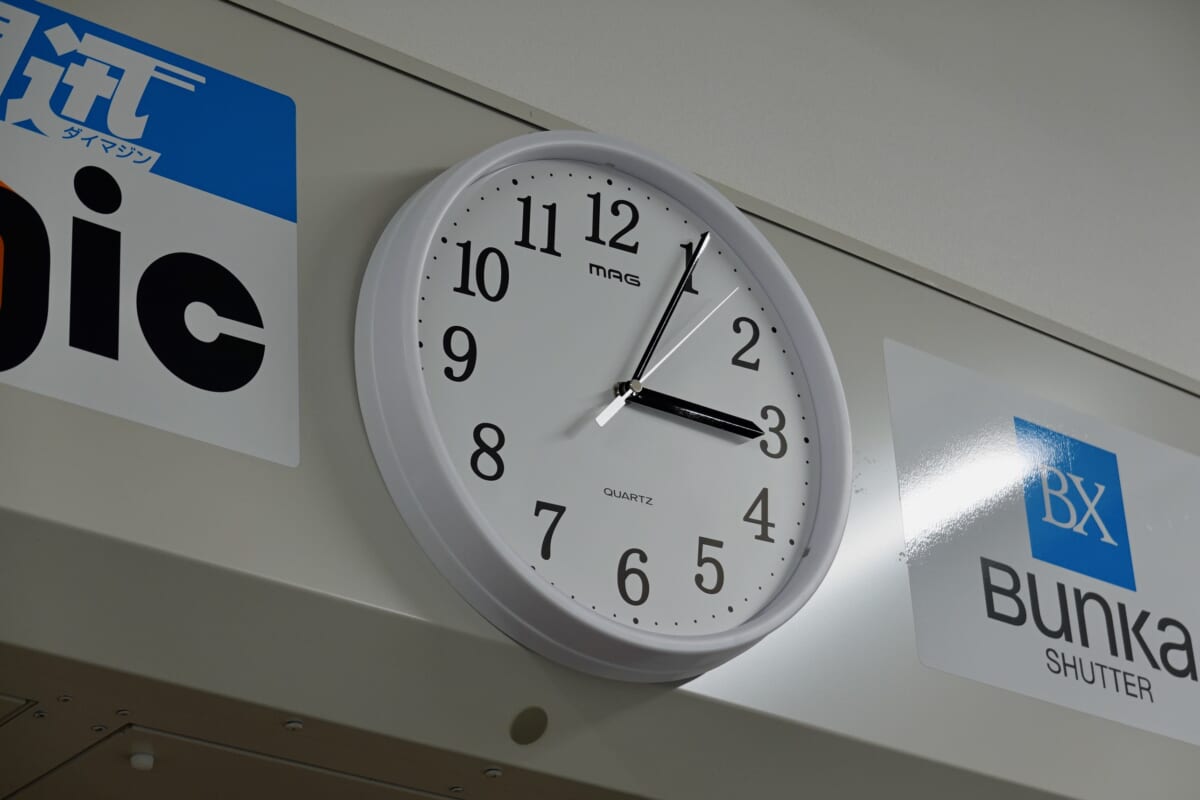 工場内へ一歩足を踏み入れると、衛生管理の厳重さに驚く。植物を健康に育てるため、虫や菌は大敵。工場の随所に、それらを持ち込まない工夫が徹底されている。髪の毛1本も露出させない厳重な衛生服に、虫除けのエアカーテン、手洗いや消毒の徹底はもちろんのこと、工場内の時計にはカバーがなかった。