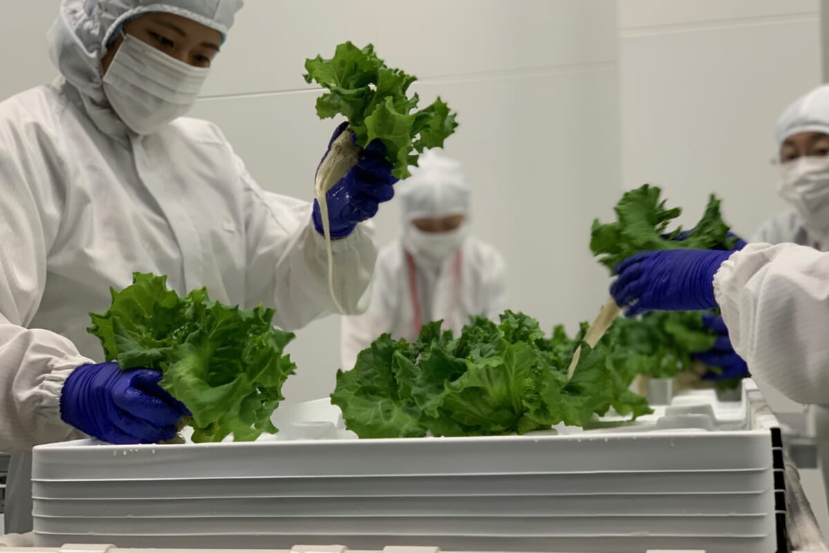 ちなみに、収穫されたリーフレタスは日々、工場長以下スタッフによって、味覚・嗅覚・触覚などで確認する検査が行われているそう。お味はどうですか? と工場長にうかがったところ(売り切れ続きで取材陣は味見できなかったのだ)、「おいしいです! サラダでお使いいただいても、ほかの食材を邪魔しない味です」とのこと。また「植物工場の葉物野菜は柔らかすぎることもあるようなんですが、お客さまには『しっかりしていますね』と味も食感も評価いただいています」。