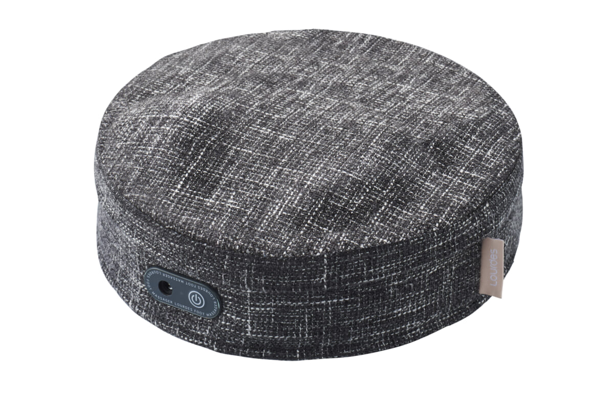まずは「ルルド フットマッサージャー プロ」です。本製品はコンパクトで薄いボディに、緩急をつけたプロのもみ技を研究したモードなど3つの自動プログラムを搭載しています。3つの自動プログラムの中の「プロもみモード」は、もみ速度に緩急をつけることで、プロが指圧する心地よさを追求したこだわりの機能。搭載した新形状の親指型のもみ玉は、もみ範囲と指圧感が向上しています。なのでグリグリとしっかり足裏やふくらはぎに入り込んで、本格的なマッサージを体感できます。直径約25cm、厚み約9.5cmで重さ1.3kgと、軽くコンパクトなので持ち運びしやすくソファの下などへの収納もラクラク。インテリアになじむ織り生地でギフトにもおすすめのアイテムです。