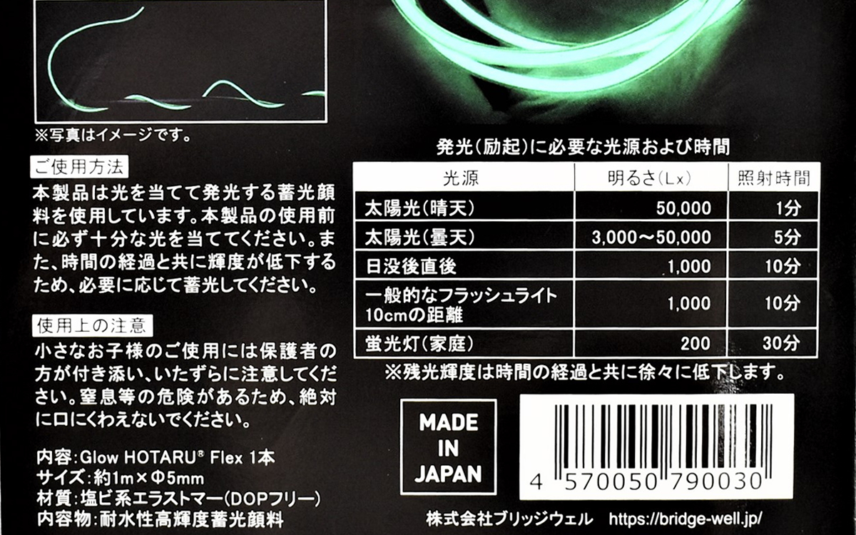 ●1分チャージで長時間光る「Glow HOTARU Flex」(ブリッジウェル)