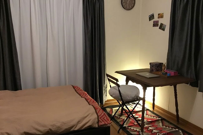 「賃貸住宅だと、照明は通常“シーリングライト”といって天井に一灯のものがついていることが多いですよね。明るさはそれだけでも充分ですが、一か所からの光で全体を照らすので、のっぺりとした陰影のない部屋に。クリップタイプのスポットライトは安価なものも多く、どこにでもつけられるので、天井照明を変えたり新しい照明器具を買ったりするより手間なく印象を変えられます。つけるときは、壁に光を当てるとやわらかな光になり、リラックスできる部屋になりますよ」