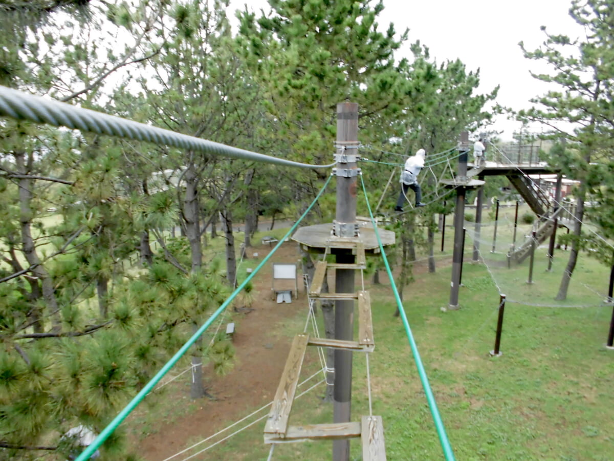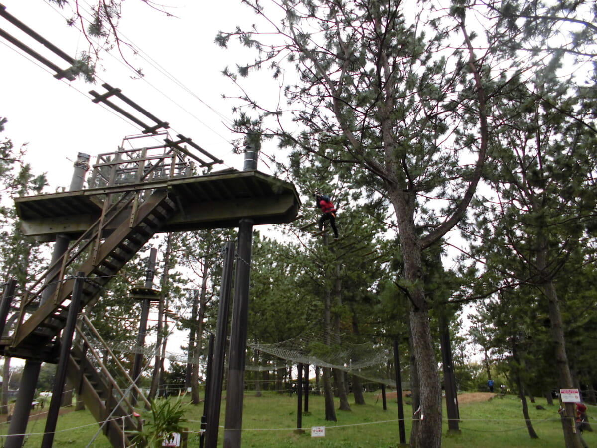 筆者は初島のアドベンチャーSARUTOBIを体験してみました。専用のハーネスを着用して樹の上を渡っていくヨーロッパで人気のアドベンチャーはスリル満点。バランスを取りながらチャレンジするコースは難易度が高く「度胸」と「体力」が必要になります。もちろん安全性はバッチリなのでその点はご心配なく(笑)。