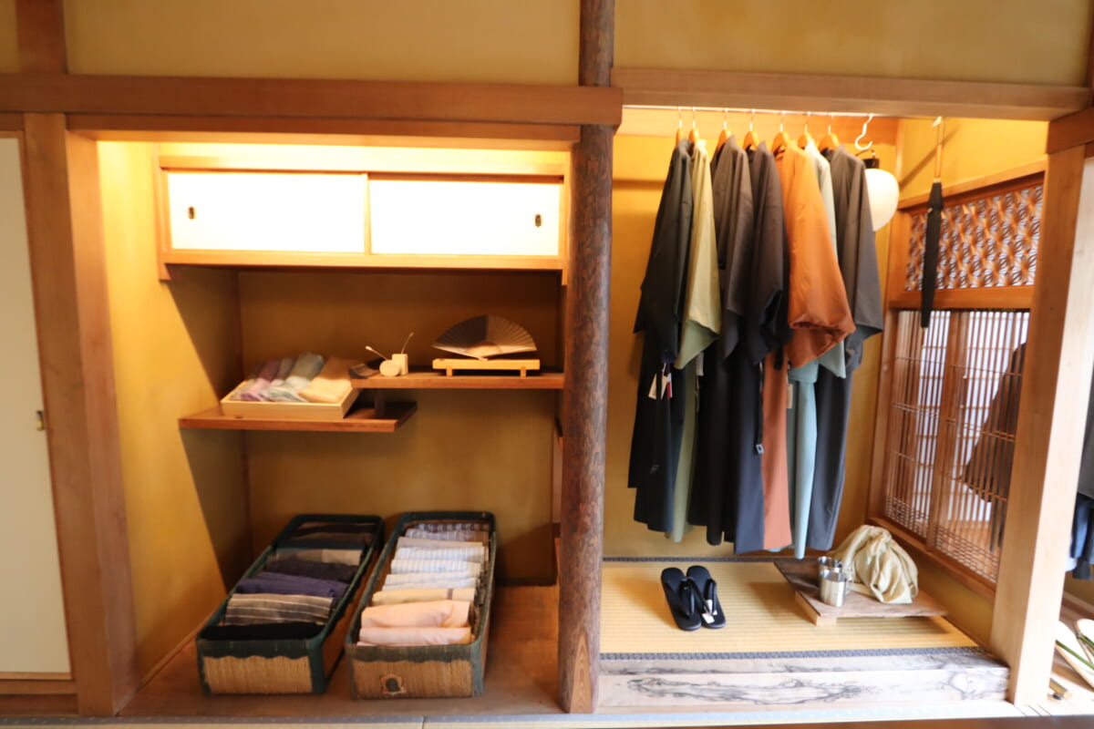 レンタルプランはショップ奥にあるYAMATO Tsunagari galleryで。予約なしのレンタルも可能ですが、お目当ての色があれば予約がベスト。もちろん、着物専門店やまとの洗練された着物のレンタルもあります。