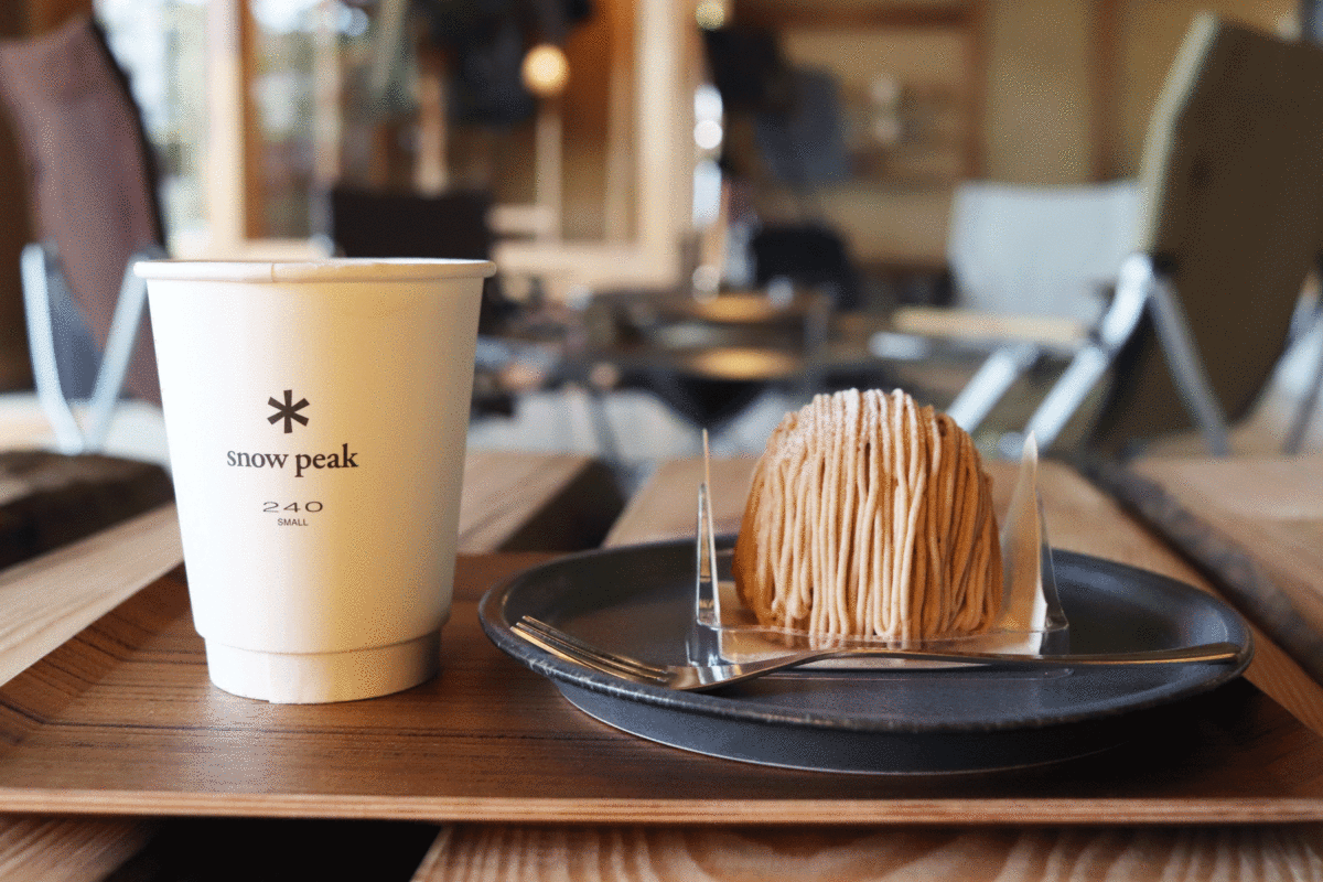 スノーピーク GOのランチセットは店内のスノーピークカフェでも食べられます。フレーバー抹茶ドリンク類のほか、クラフトビール、日本酒、ウィスキーなどの酒類もあり、カフェといってもちょっとしたバーのようなラインナップ。フード類はホットドッグやフライドポテトなどの軽食類とケーキがあります。