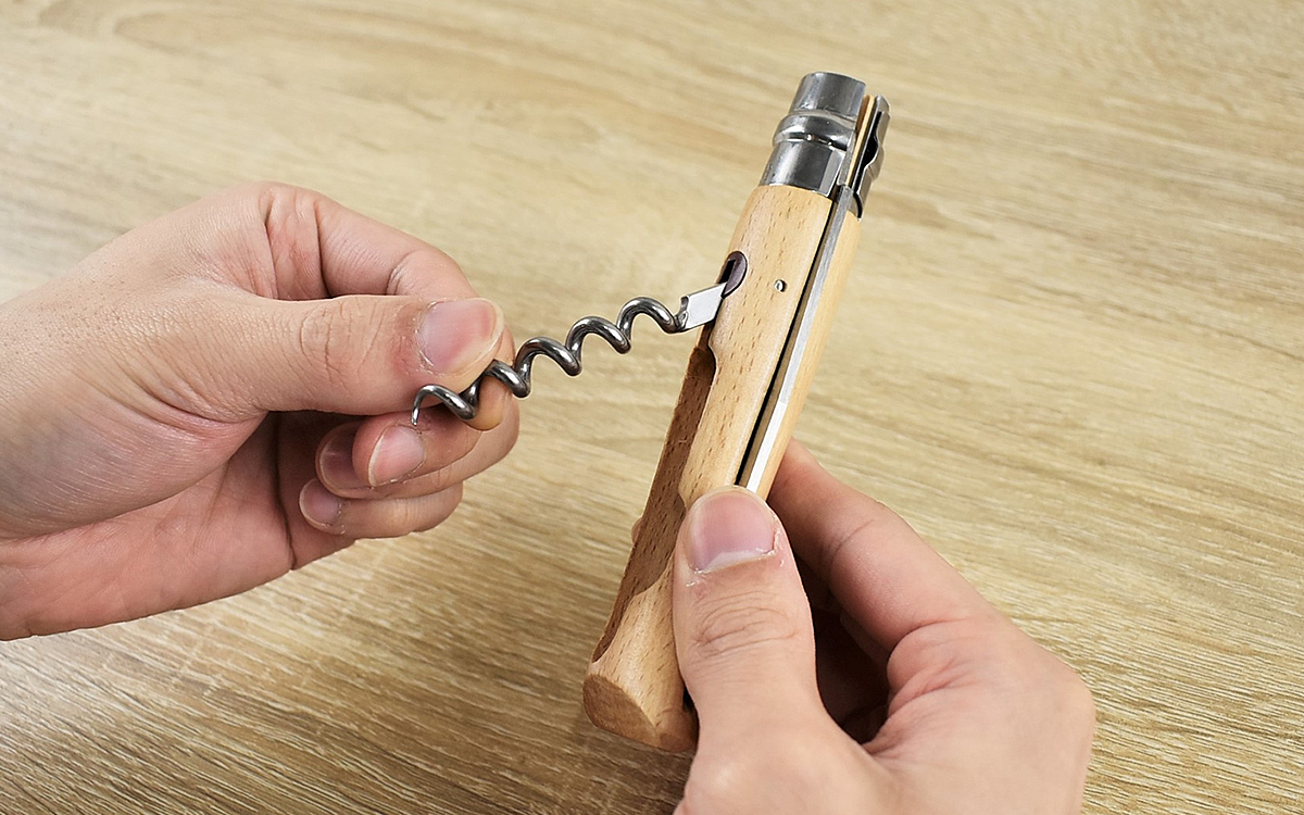 柄の内側には栓抜きが埋め込まれていて、こちらも引き出すだけで使いやすい形状に。スクリュー部分も長く、コルクに深く差し込んで引き抜くことができますよ。