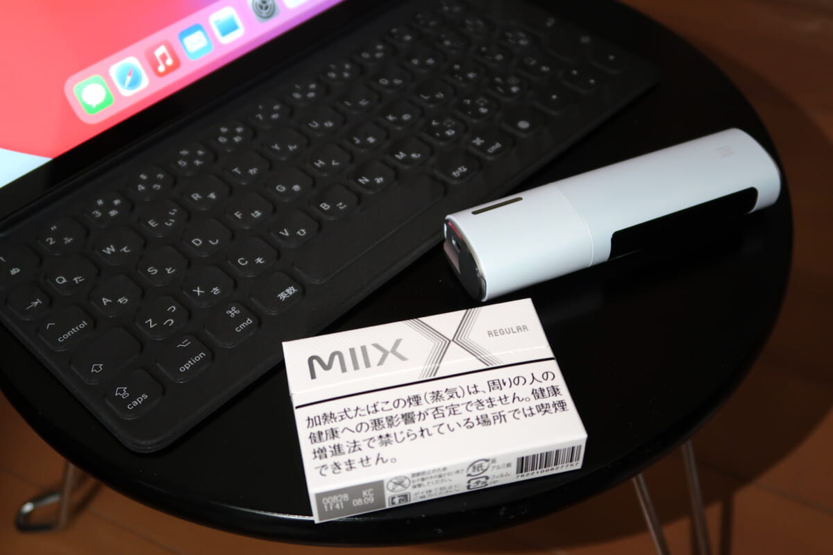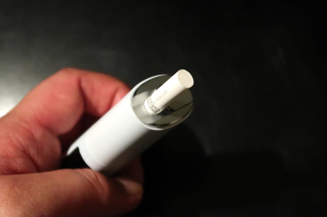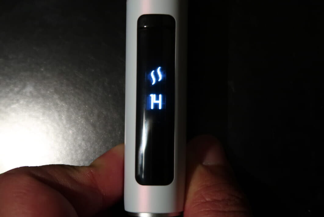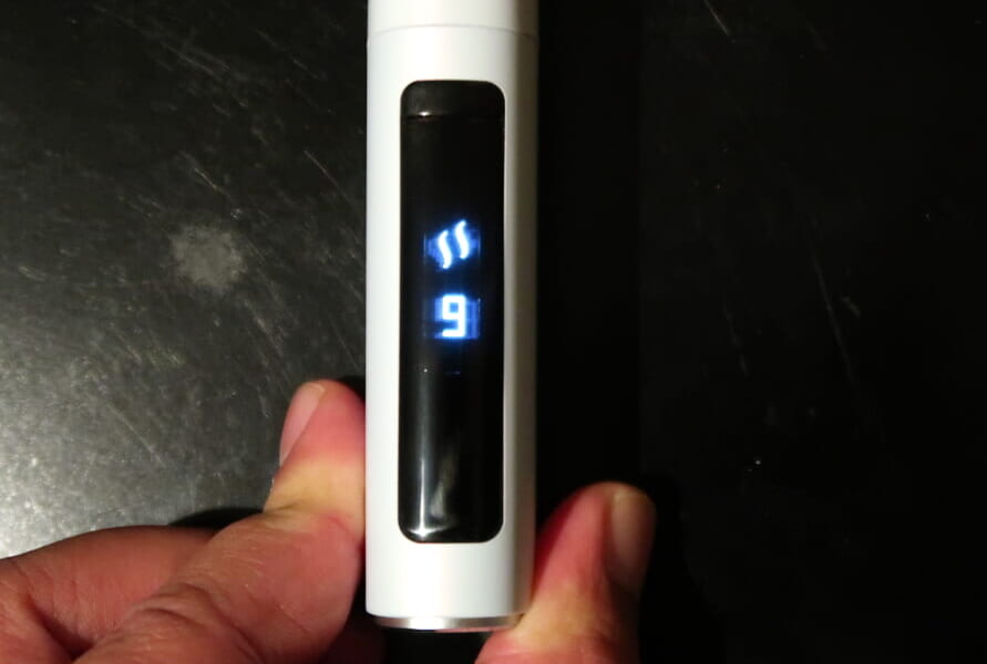 吸える状態になると、ディスプレイに「14」という数字が表示されました。これは、パフ回数のカウントで、1回吸うごとに数字が減っていきます。残り3回になると、さらに振動で知らせてくれます。吸い始めると、ガツンとした吸いごたえはあまりないですが、ベイパーを掛け合わせているだけあって蒸気の量が多く、たばこを吸っているようで満足感はやや高いです。
