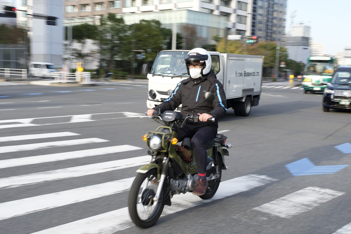 ここまで紹介したのが電熱ジャケットの概要ですが、最後に実際にバイクに乗りながら「赤」「青」「緑」「オフモード」の各モードを試してみました。