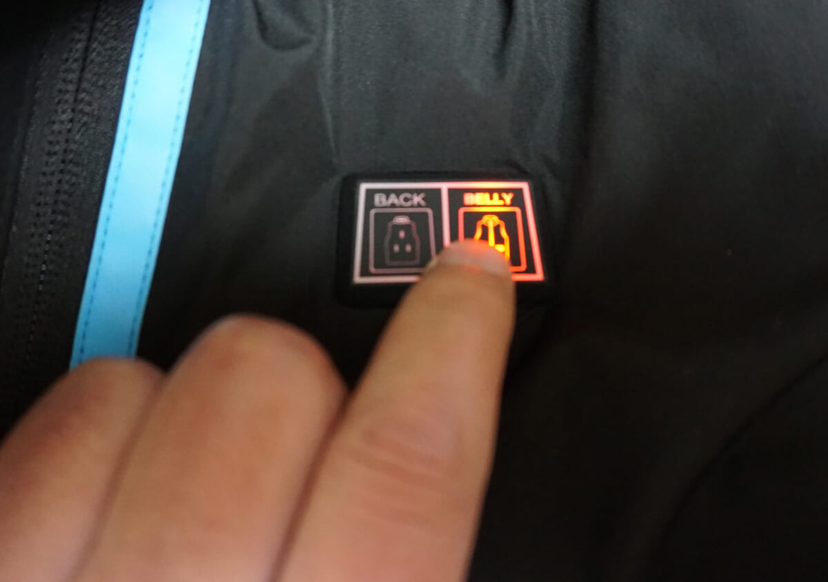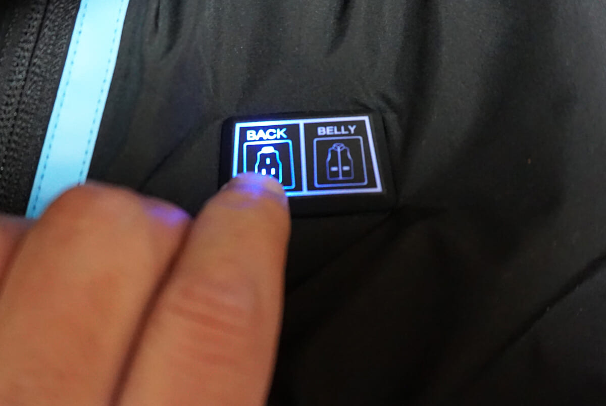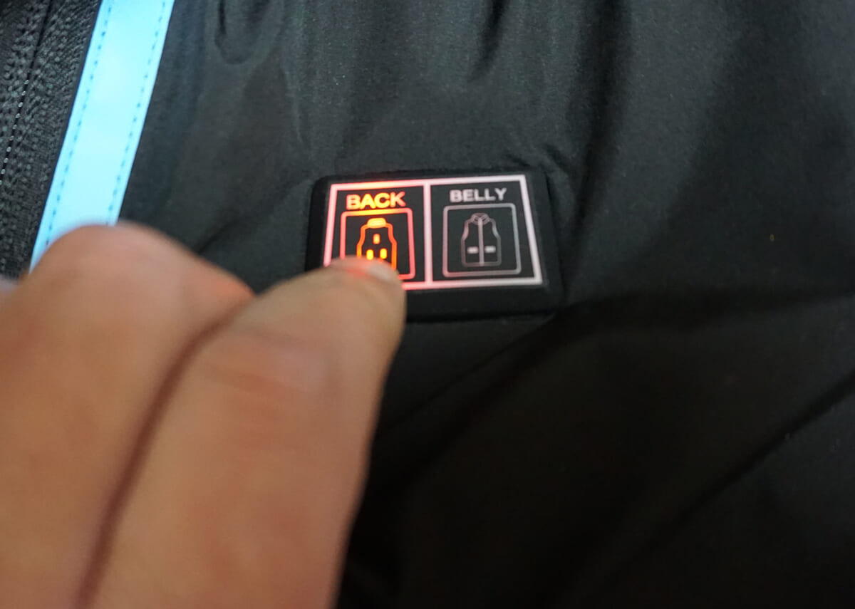 次に前みごろ(BELLY)を加熱していきます。後みごろ(BACK)で感じた違和感は、前みごろ(BELLY)では感じず、むしろ快適に。バイクは体で風を切っていくため、前みごと(BELLY)では、これくらい強烈に「暑い」ほうが良いなと思いました。