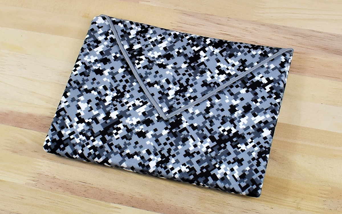 裏地は薄いグレー色をしているのですが、グレー部分と迷彩部分を重ねることでマジックテープのような効果を発揮。布同士がくっつくため、包んだものをしっかりと保護することができました。