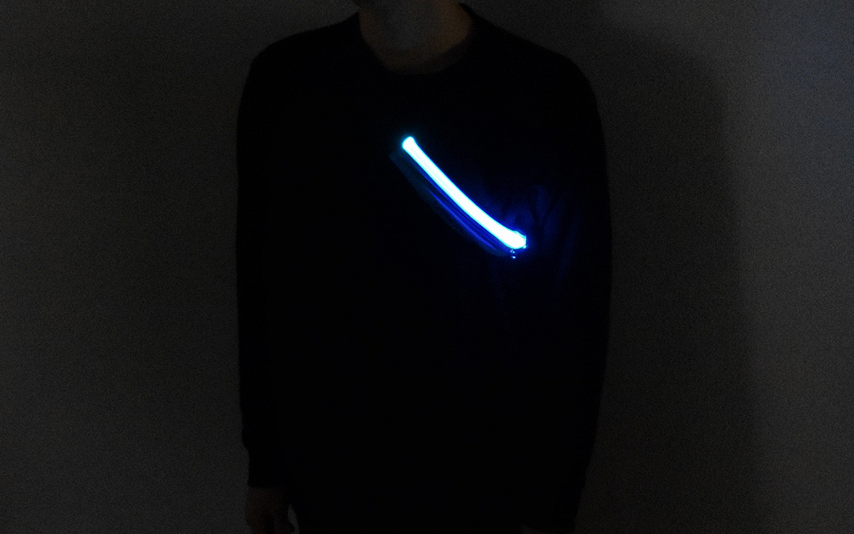 それでは点灯モードに切り替えていざ夜の散歩へ。暗くて見えにくい夜道は事故などが懸念されますが、強い光で明るく照らしてくれる「ランニングポーチ LW-RP1」を持っていけば心配いりません。LEDライトを内蔵したポーチは、目印になるような光が魅力的。スマホなど貴重品も入れられるうえ、ちゃんと明かりも確保できました。