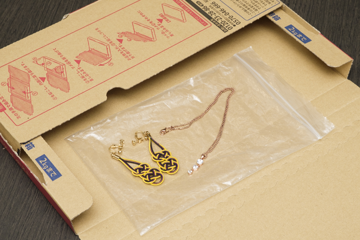※わかりやすいように梱包材を使わずに発送物だけを入れた状態の写真を撮影しています。実際に送付する際には、丁寧に梱包して送りましょう!
