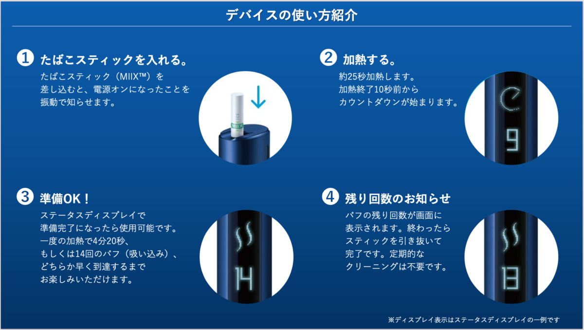 専用たばこスティックのミックスは、底が“Y字型中空アセテートチューブ”と呼ばれる形状で作られており、たばこのカスなどが残らない形になっています。専用たばこスティックの銘柄は以下の3種。