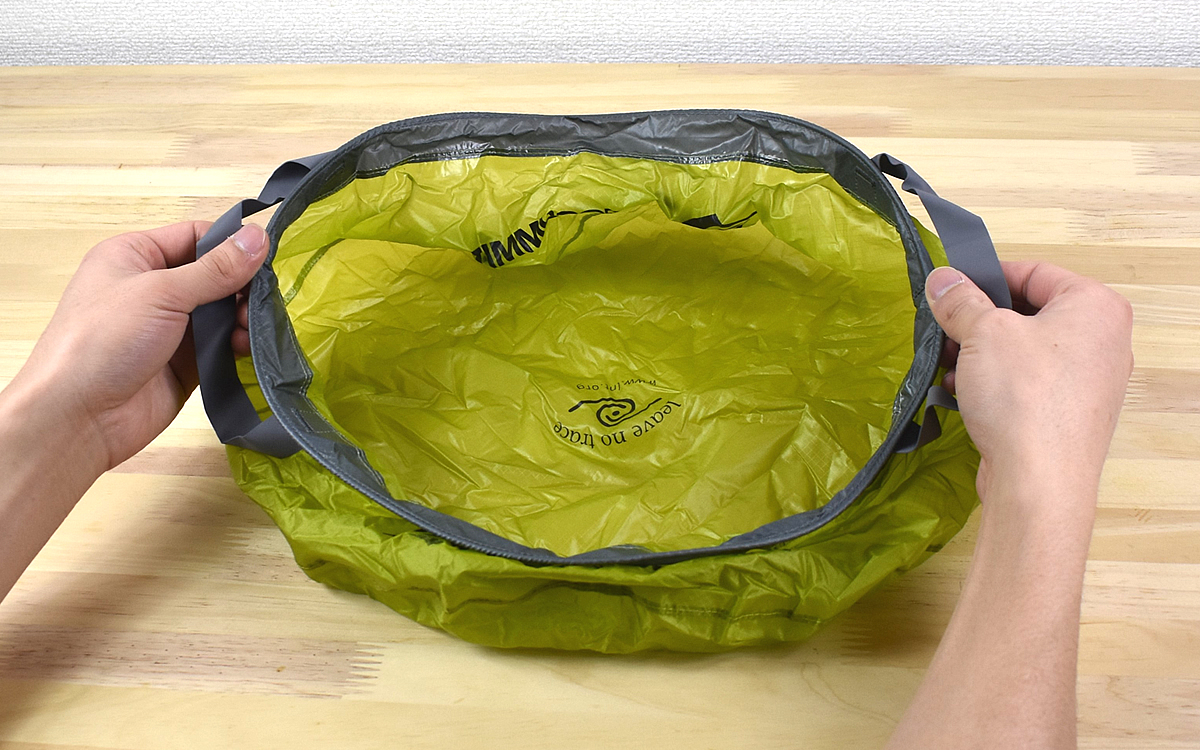 広いキャンプ場では、拠点をどこに置くかで過ごしやすさが大きく変わるもの。例えば、水を汲める水道や川が遠い場所だと、料理や洗い物をするたびに水を運ぶ手間と時間がかかってしまいます。どうしても水場の近くにテントを張れないときは、水を溜めておける大容量のバケツがあると便利。そこで今回は、丈夫な生地で作られた「ウルトラシル キッチンシンク」(3300円/税込)を購入してきました。