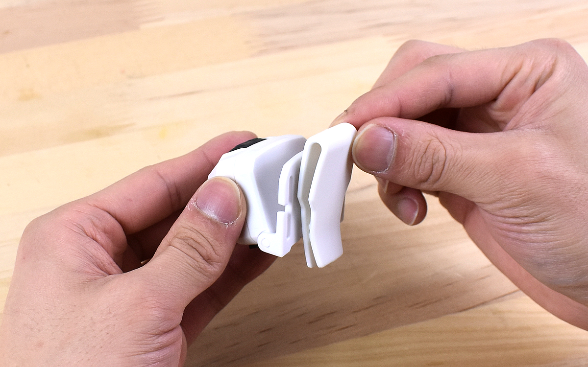 同商品は、目に優しい赤色LEDと電球色のLEDを採用したライト。赤色LEDは天体観測現場で使われる定番のライトで、暗いところに慣れた目にあまり影響が出ない色だといわれています。ライト本体は41(幅)×33(高さ)×30mm(奥行)と小さく、付属のストラップや裏側に取りつけられるクリップで携帯することが可能です。