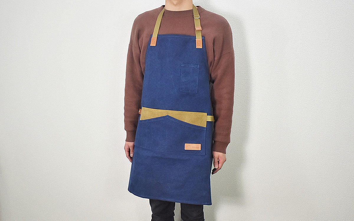 キャンプではコンロではなく薪や炭で起こした火を使うため、料理をする際はなるべく汚れが気にならない服装がベスト。自宅と同じようにエプロンをつける人もいますが、薄手の生地だと燃えやすいため私は何もつけません。ところが先日、ネットで「キャンプエプロン」(4048円/税込)を発見。キャンプでの使用に特化したエプロンと聞いて、迷わず購入しました。