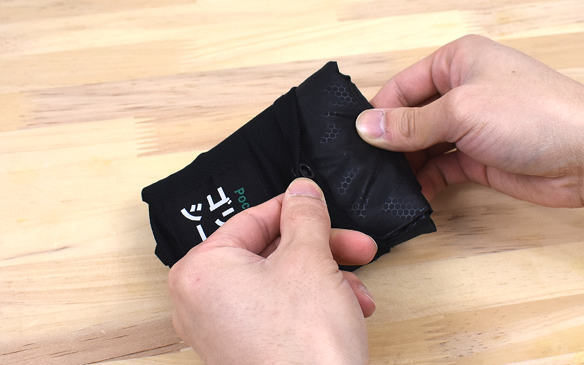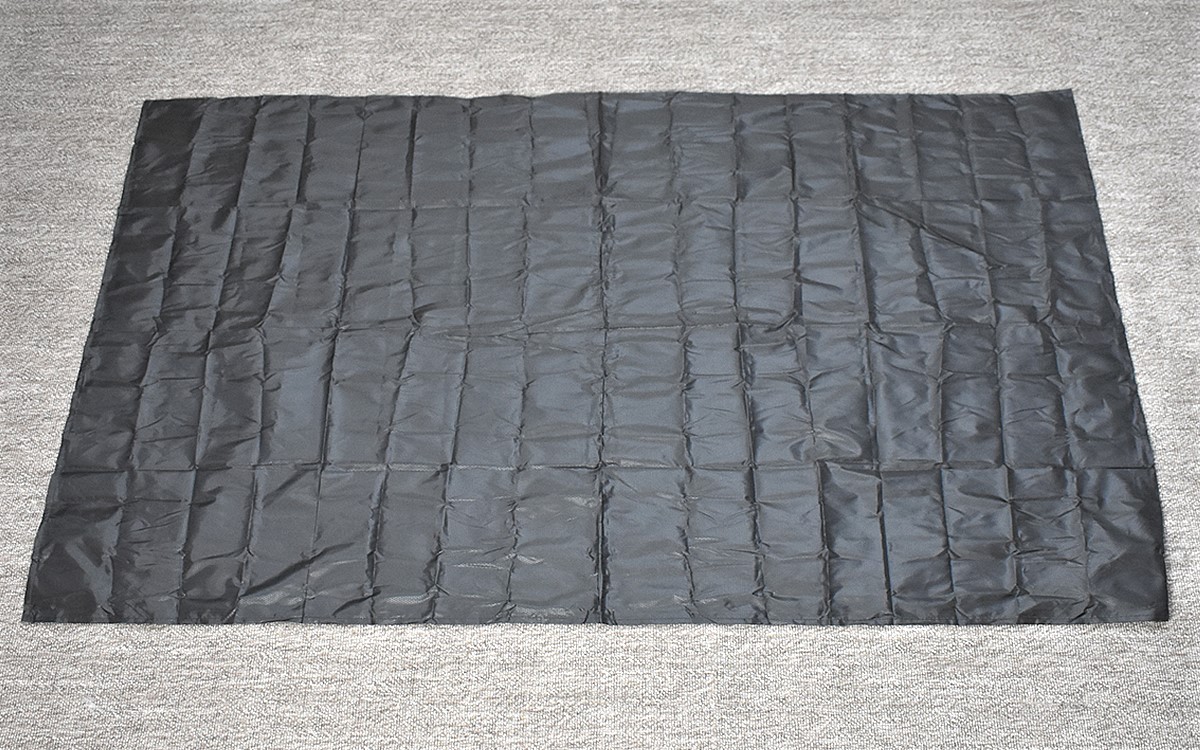 同商品は、ポリエステル100%の素材で作られたレジャーシート。折りたたんだ状態だと9(横)×13cm(縦)ほどの大きさで、ジーンズのポケットや荷物の隙間に収まるサイズ感です。重量も110gしかなく、荷物がどんなに多い日でも負担になりません。