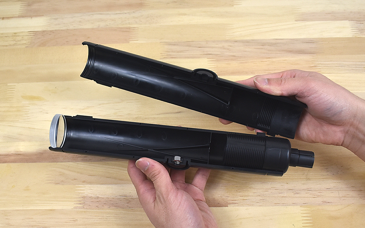 パーツの一部は細長い筒を縦割りにした状態になっていて、望遠鏡がどんな仕組みで作られているのか、学びながら組み立てることができます。対物レンズは光学ガラス製、接眼レンズはプラスチックで作られた丈夫なレンズです。