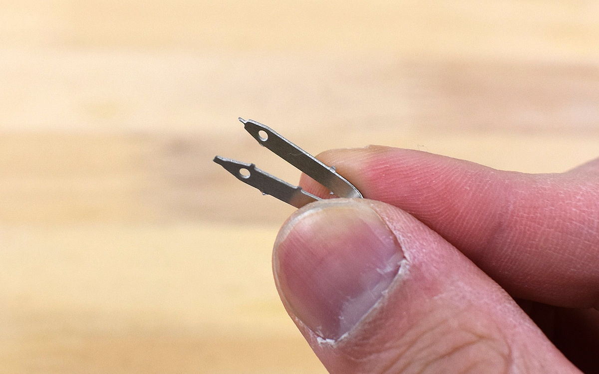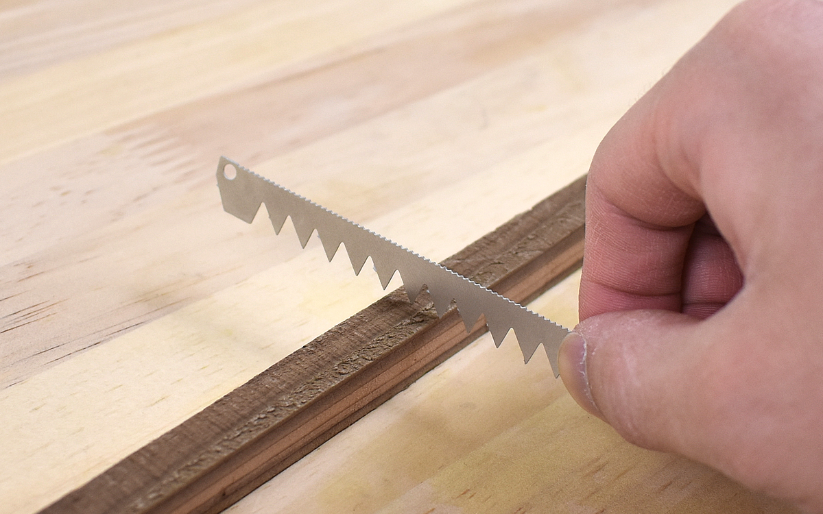 ギザギザ部分の正体は“ノコギリ”。カード状にまとまっている各種機能を分解して使う仕組みで、各部品を簡単に手で切り離すことができました。試しにノコギリ(大)の部分を分解して使ってみると、想像以上の扱いやすさにびっくり。写真のような細かい作業に適しており、“小枝を切る”などの場面で活躍します。