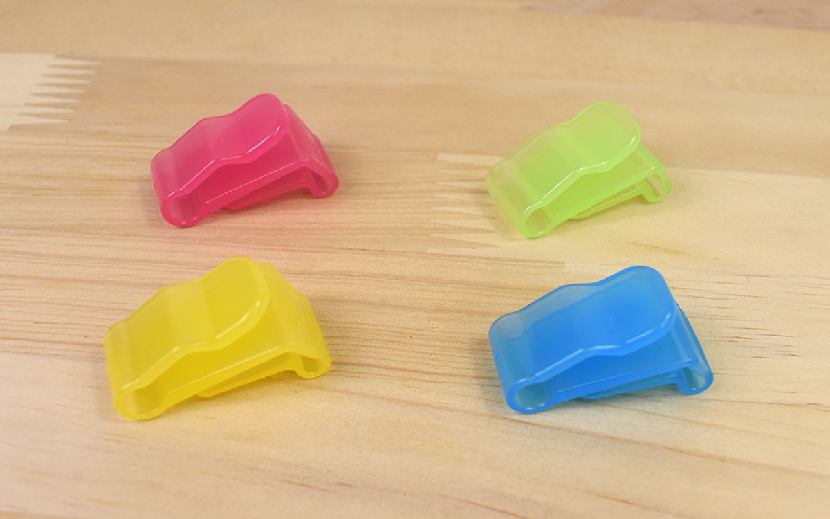 4種類のカラーがセットになった「割り箸クリッパー」。ツルツルとした肌触りのポリプロピレンでできており、ポップな色合いが目を引きます。