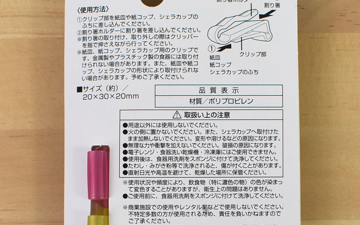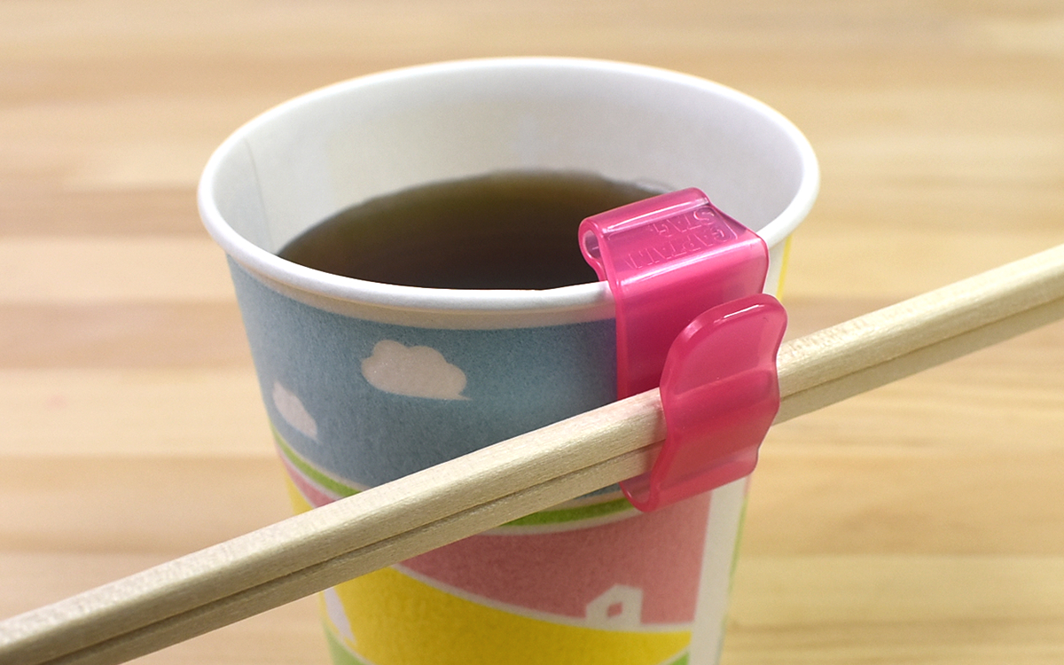 使い方は至ってシンプル。お箸を挟めるホルダー部分にスッと割り箸を通すだけ。ただ、割り箸を取りつける際、ホルダーに無理やり箸を嵌めこもうとすると、破損の原因になるため注意してください。