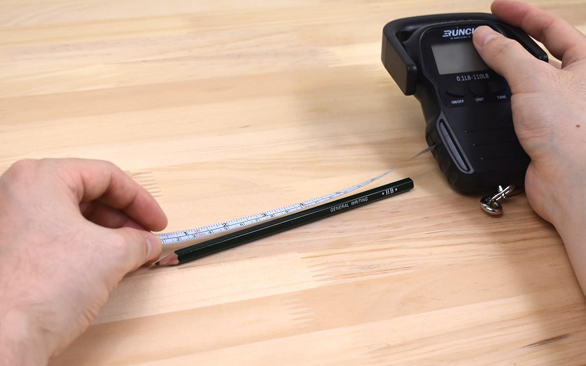 また本体の左側面に内蔵されているのが、小物や荷物の計測に便利な160cmのメジャー。幅が細いため扱いやすく、手を離すとしっかり本体内に巻き戻されていきました。
