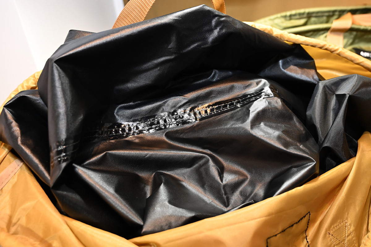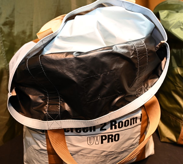 また、「ダークルームテクノロジー」とプリントされた生地は、テントやタープで直射日光を遮ってテント内を涼しく保つのに使われており、バッグに使用すると屋外で直射日光にさらされても中の温度を一定に保つことができます。