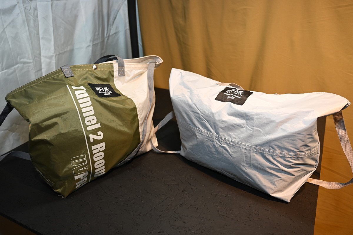 その第一歩として、廃棄されるテントから作成したバッグ7アイテムが発表されました。