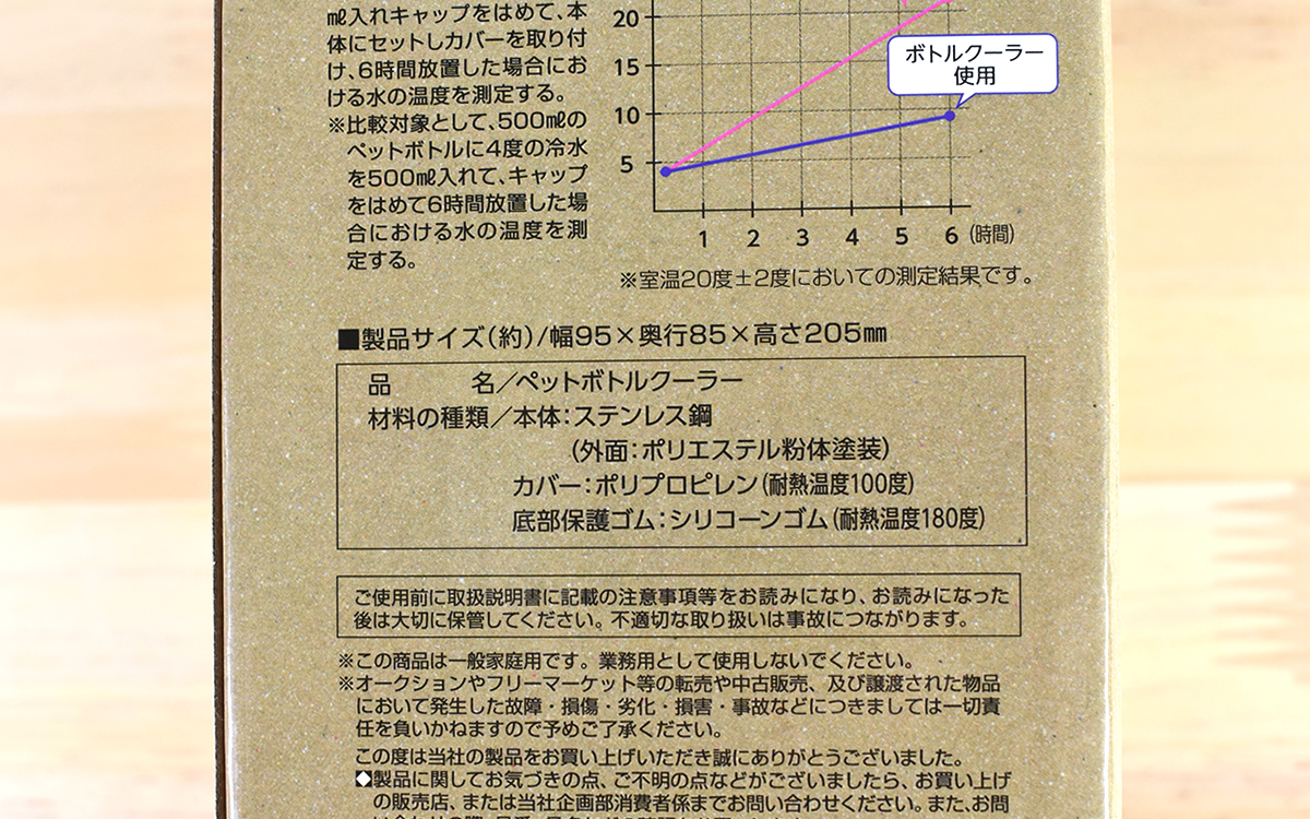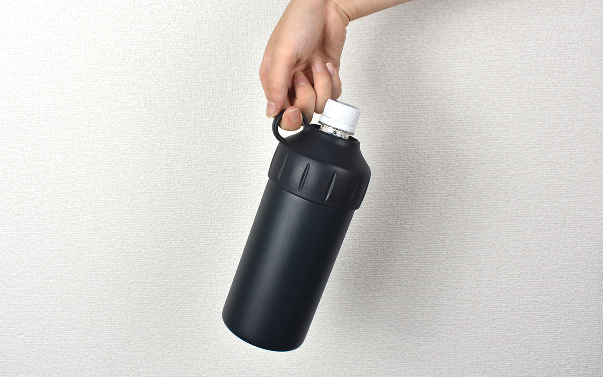 まずはカバーをクルクルと回して外し、ペットボトルを本体に入れましょう。取り外したカバーを被せて閉めれば装着完了です。本体は真空二重構造になっており保冷効果抜群。実際に同商品にペットボトルを入れて2時間ほど置いてみましたが、冷たさは持続していました。