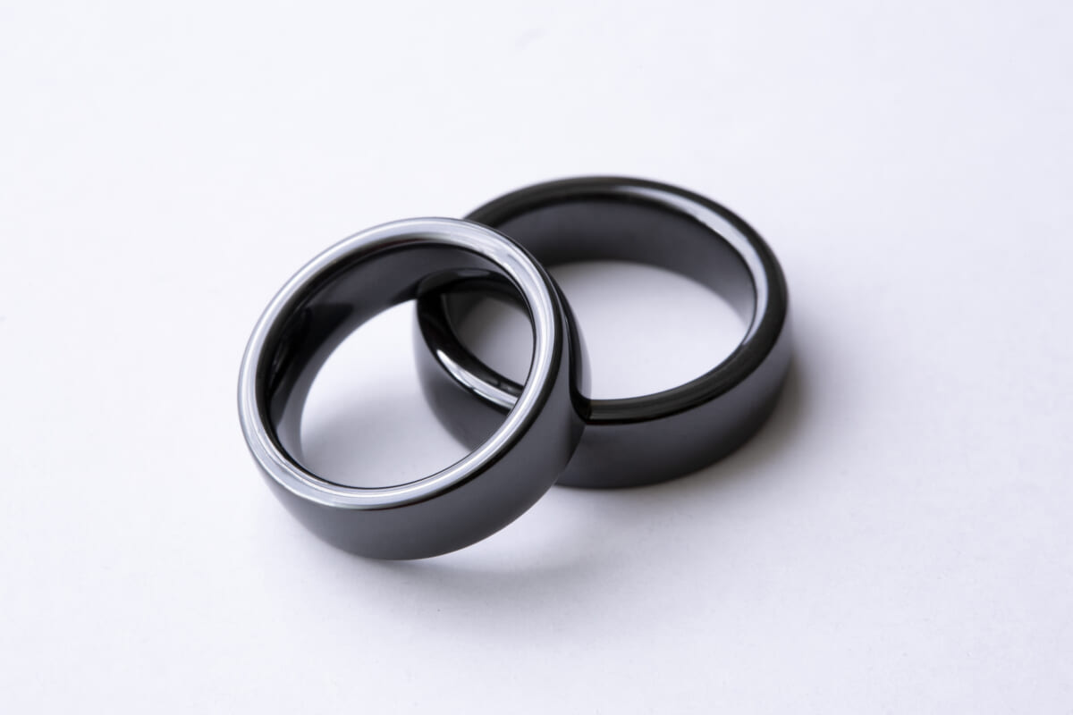 リングの素材にはジルコニアセラミックを使用。義歯などに使われる素材で、金属アレルギーが心配な人も安心して使えます。サイズは、US 4.5~US 13(国内規格では8号~27号)までの全17種類を用意します。