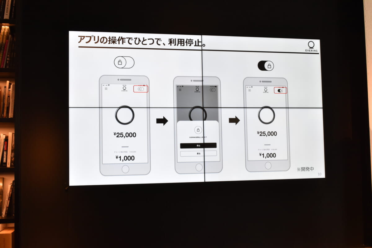 また、発売時には専用アプリが提供される予定。先に説明したチャージができるほか、残高の確認や、EVERINGを紛失した際の利用停止も可能です。また、設定した残高を切ると自動でチャージされるオートチャージ機能にも対応するとしています。素早くタッチ決済できるぶん、リングを紛失するとあっという間に不正利用につながってしまいますが、スマホアプリの操作ひとつで簡単に利用停止できるのは、プロダクトとして作り込まれていると言っていいでしょう。