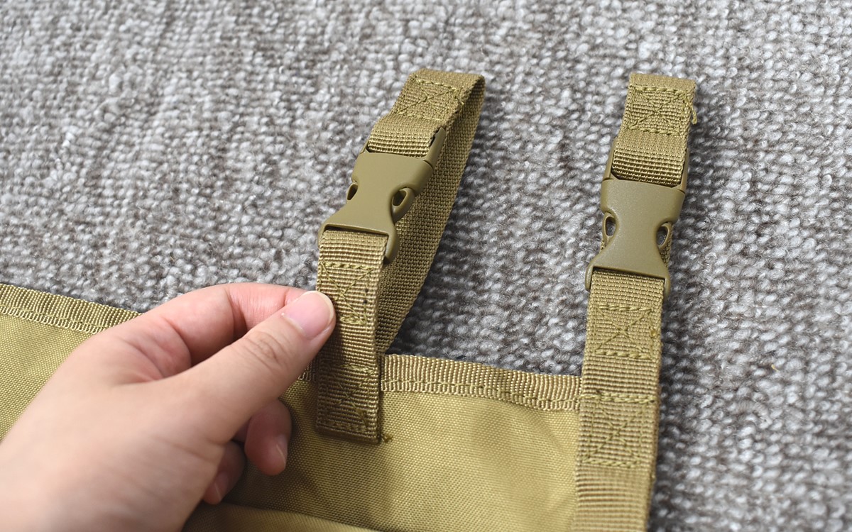 本体上部には吊るすための輪っかが4つあるので、棒や紐を通せば手軽に設置可能。付属の黒い紐を下部の輪っかに通して、車のシートに取りつけたら“背面収納”としても使用することができます。
