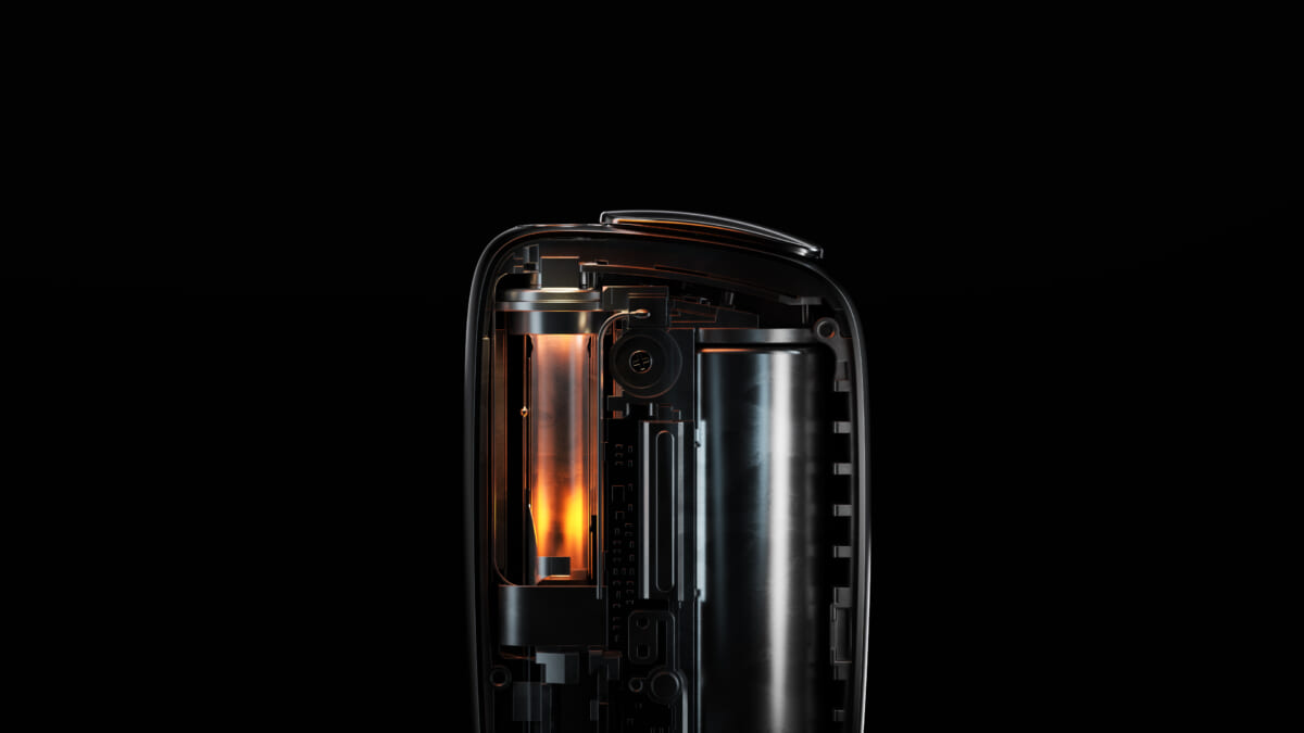 進化したポイントはデザインだけでありません。JTの従来モデルに比べ、吸い応えが向上しています。その理由は、新発想の加熱技術“HEATFLOW(ヒートフロー)”を搭載し、加熱温度の緻密なコントロールに加え、空気の流れに着目したから。この加熱技術によりパフ制限がなくなり、5分の使用可能時間内であれば、最後まで奥深く香り高い味わいを愉しむことができます。