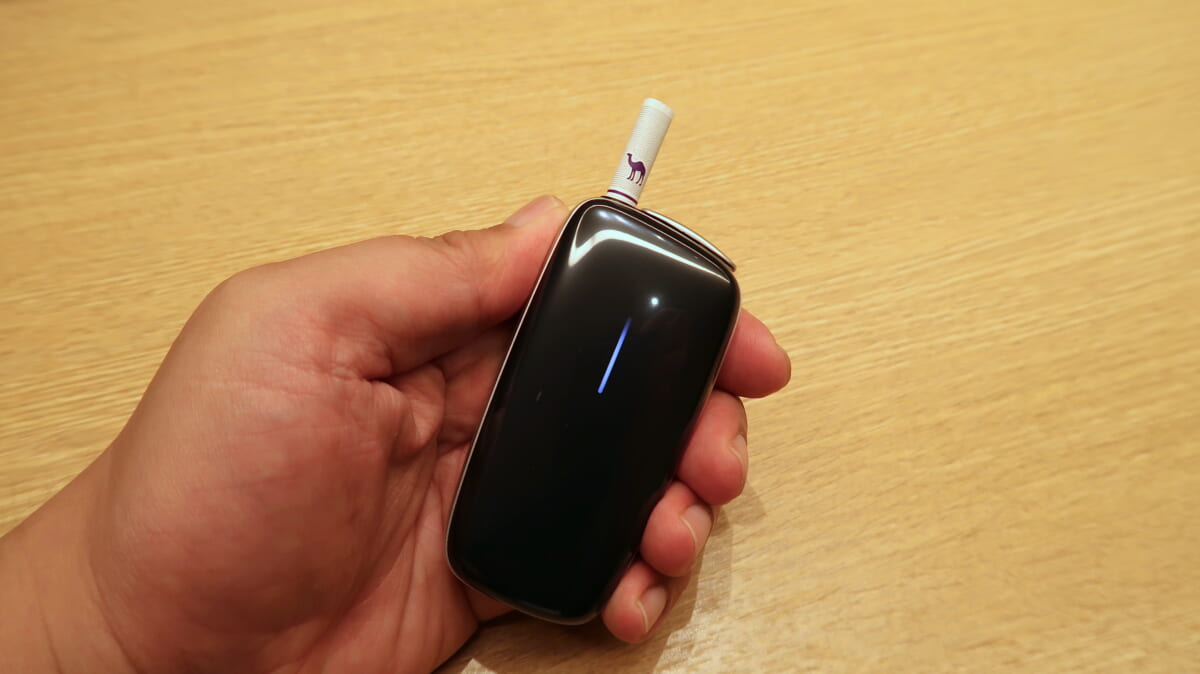 従来は最大14パフと吸う回数に制限が設けられていましたが、本機ではパフ回数制限なしというのもユーザー嗜好によるけどうれしいポイントですね。吸いごたえが強化されているだけあって満足度も高いです。使用可能時間が残り20秒になるとデバイスが振動し、間もなくヒーターが停止することを知らせてくれます。最後の20秒間はLEDがゆっくりと点滅します。
