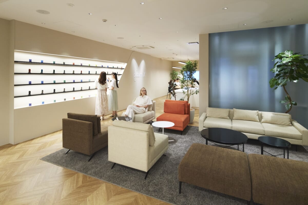 2Fのショップエリアには、くつろぎながらじっくりプルーム・エックスを試せるラウンジスペース、詳しい商品説明を行うカウンタースペースがあります。