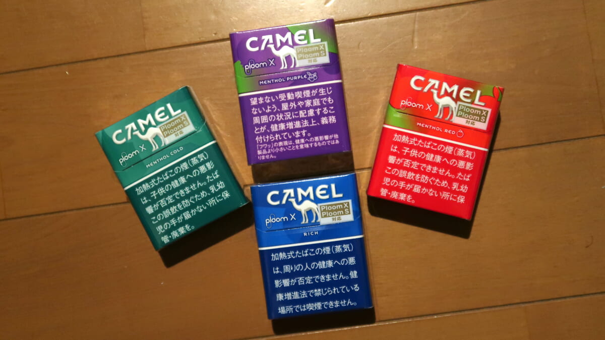 続いて、キャメルシリーズ。「キャメル・リッチ」はメビウス・スムースの上位版のような喫味で、コクのある強い味わい。吸い始めから感じるタバコ葉の旨み。今までのプルーム・エス用たばこスティックよりも圧倒的に吸いごたえがありますね。「キャメル・メンソール・コールド」は王道のメンソール。メンソール感が強く、ほんのりとした甘みも感じられるので、メンソール好きにはたまらない銘柄。吸いごたえもあって満足感が高いですね。