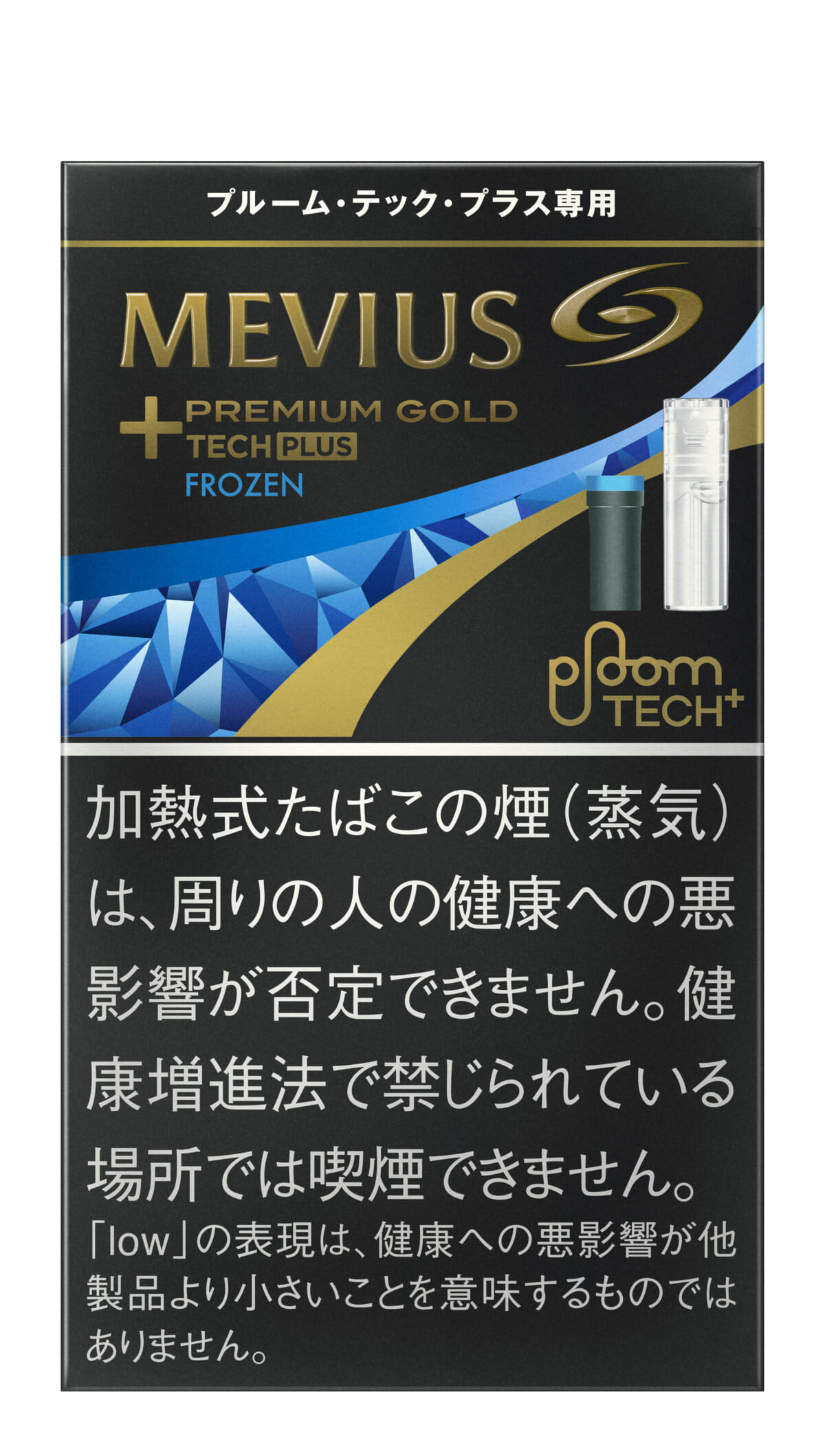 メビウス・プレミアムゴールド・フローズンは、従来のプルーム・テック・プラスシリーズのたばこカプセルにはない、突き抜ける氷冷メンソールが特徴です。氷冷感を体感できるよう新開発したカートリッジを使用し、これまでにないメンソール感を実現。また、希少な純国産特別原料「ゴールドリーフ」を100%使用しており、濃さと旨さを、より爽快に愉しめます。