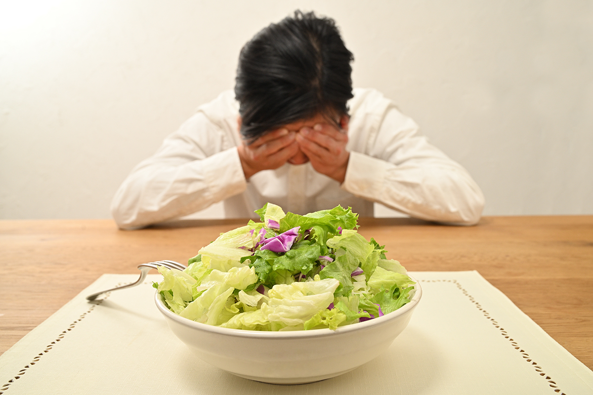 1食ずつ、食生活が改善されていくと、今度はより高みを目指したくなります。さらに健康によさそうなもの、たとえば野菜を多く摂ってみてはどうかと考え始め、食事の際に生野菜サラダを山盛りで用意してみました。