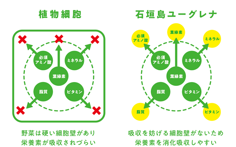 ↑野菜とユーグレナの違いをわかりやすく示した図
